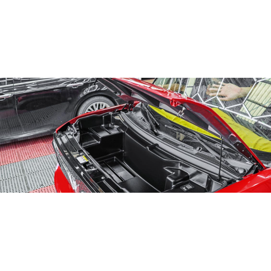 Thay vì phải dùng chìa khóa cơ hay lẫy giật, bộ cốp trước này được mở hoàn toàn bằng một nút điện (công tắc) được lắp đặt gọn gàng, thẩm mỹ ngay trong khoang lái. Chỉ cần một thao tác bấm, cốp trước sẽ tự động bật mở. Trải nghiệm này vô cùng dễ dàng, nhanh gọn, giúp bạn lấy đồ hoặc kiểm tra xe một cách thuận tiện nhất.