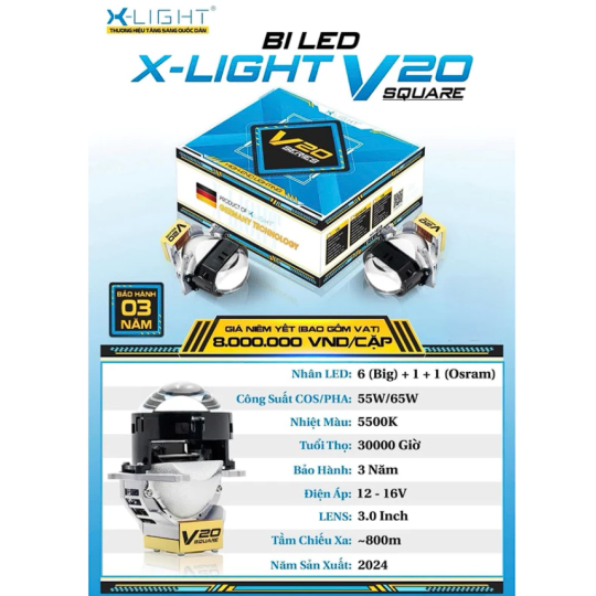 • Sản phẩm chính hãng: Đảm bảo sản phẩm Bi LED X-Light V20 Square là hàng chính hãng, có nguồn gốc rõ ràng, tem mác chống hàng giả và phiếu bảo hành từ nhà phân phối.