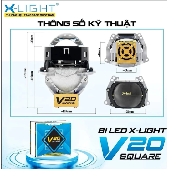 Để giải quyết triệt để những hạn chế của đèn zin Vinfast VF3, giải pháp Đèn Bi LED X-Light V20 Square nổi lên như một lựa chọn hàng đầu, được thiết kế tối ưu cho các dòng xe có không gian chóa đèn hạn chế. Sản phẩm này không chỉ mang lại hiệu suất chiếu sáng vượt trội mà còn đảm bảo sự tương thích cao, giảm thiểu tối đa các can thiệp vào cấu trúc xe.